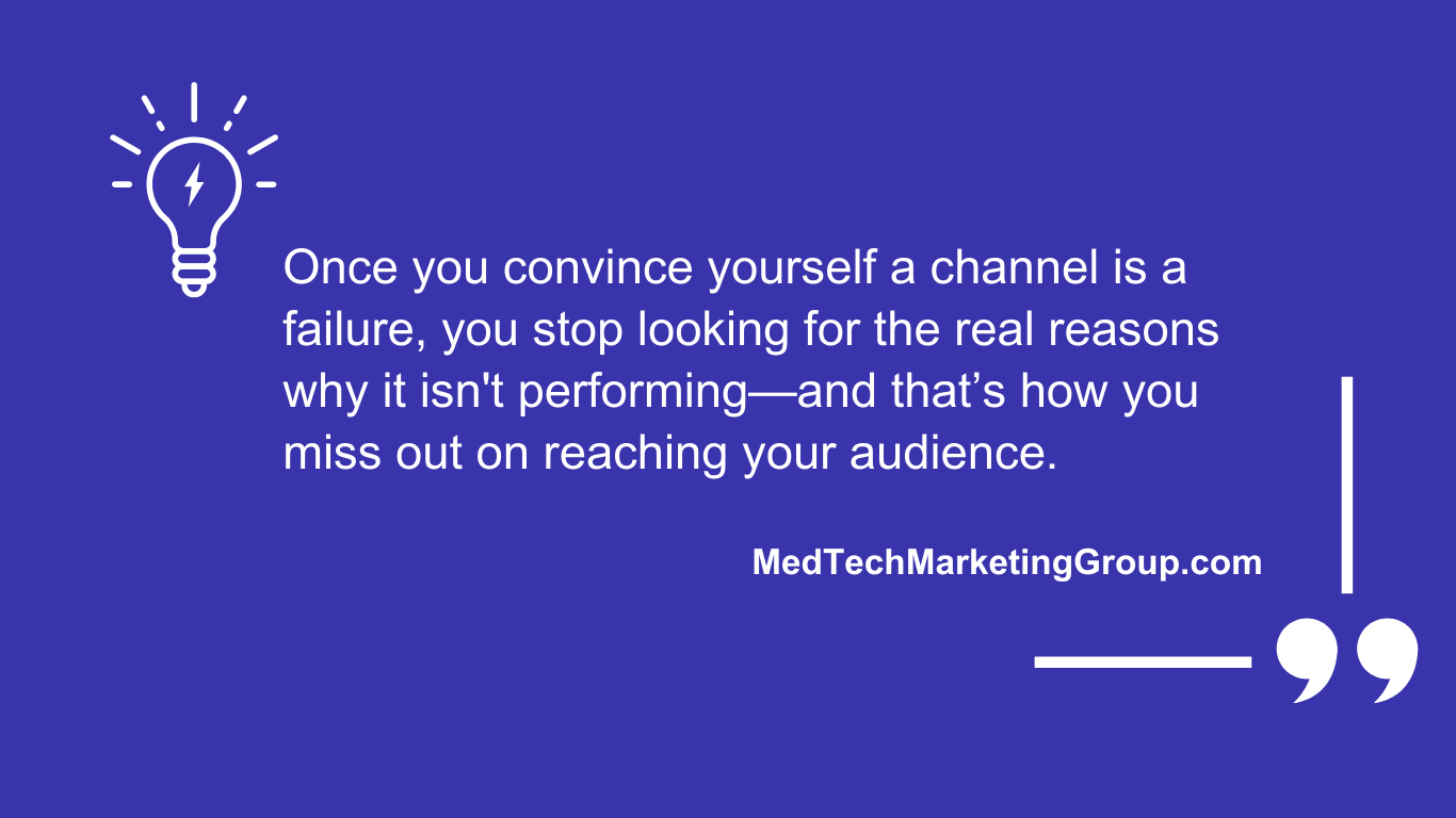 The consequence? Once you convince yourself a channel is a failure, you stop looking for the real reasons why it isn't performing—and that’s how you miss out on reaching your audience.